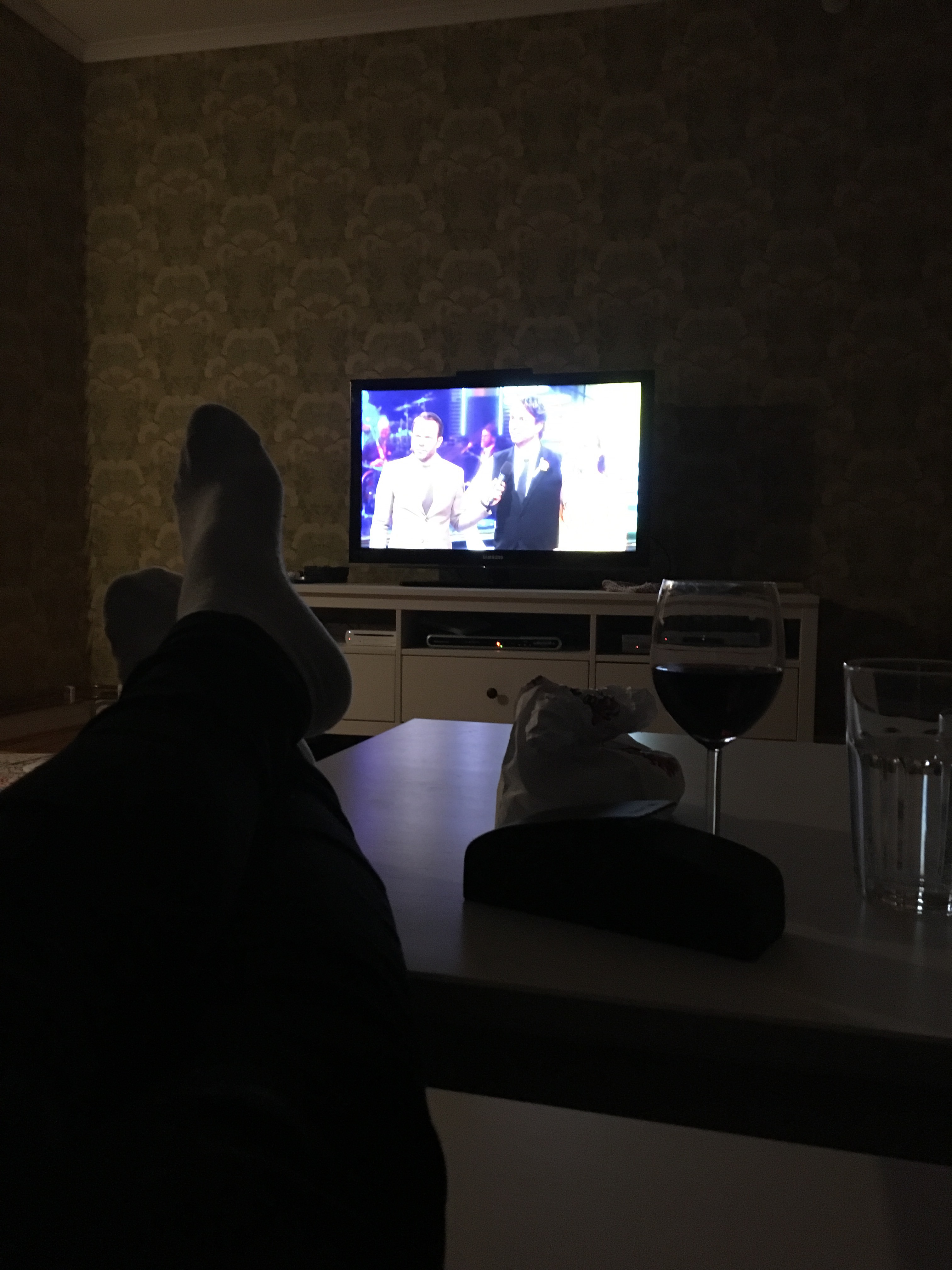 Under fredagsmyset sa Celeste plötsligt: Nu faster ska du bara vila. Hon gav mig massage – la upp mina fötter på bordet- borstade mitt hår – hämtade en filt – stoppade om mig – och hämtade ett stort glas vatten. Det är min tjej det.