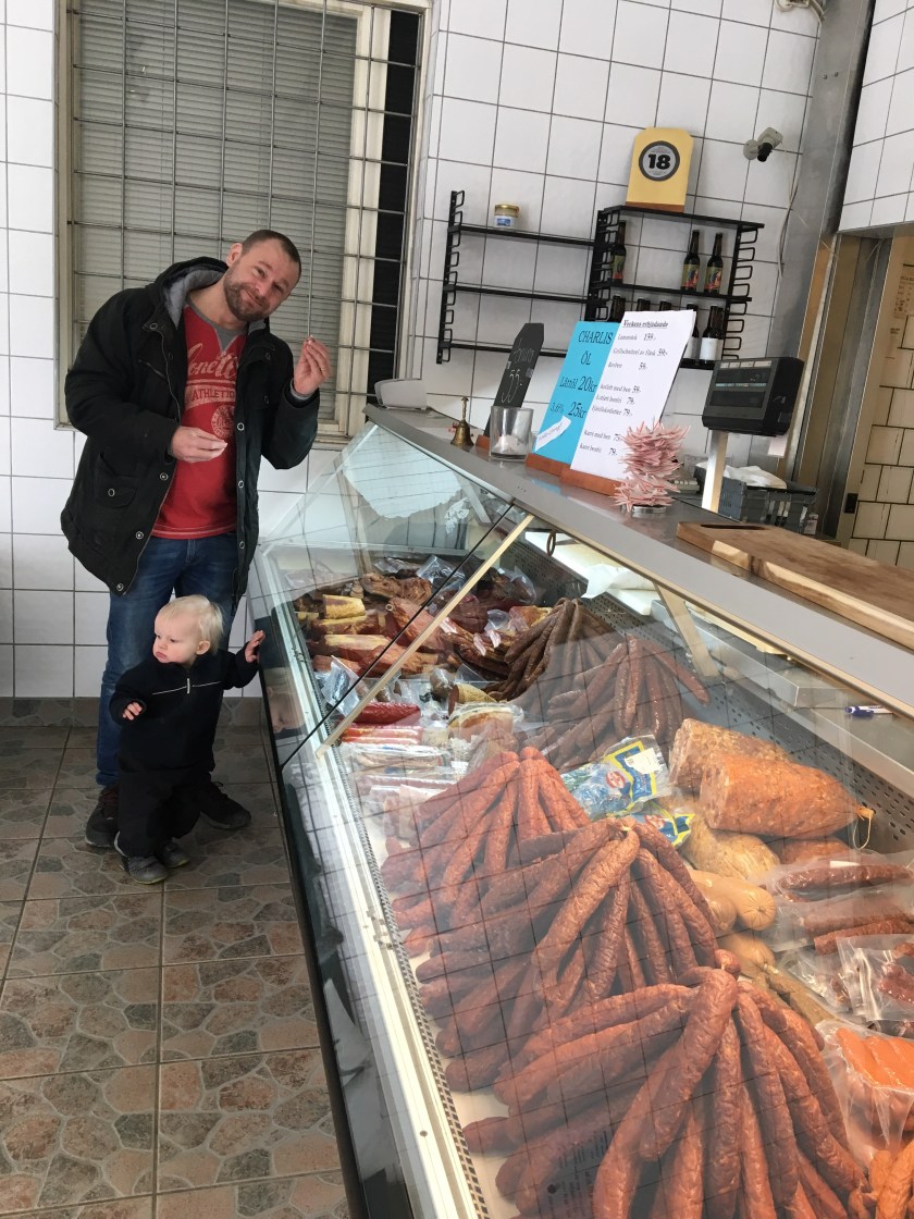 Sen drog vi vidare för att inhandla köttet till kvällen i den lokala köttbutiken på landet.