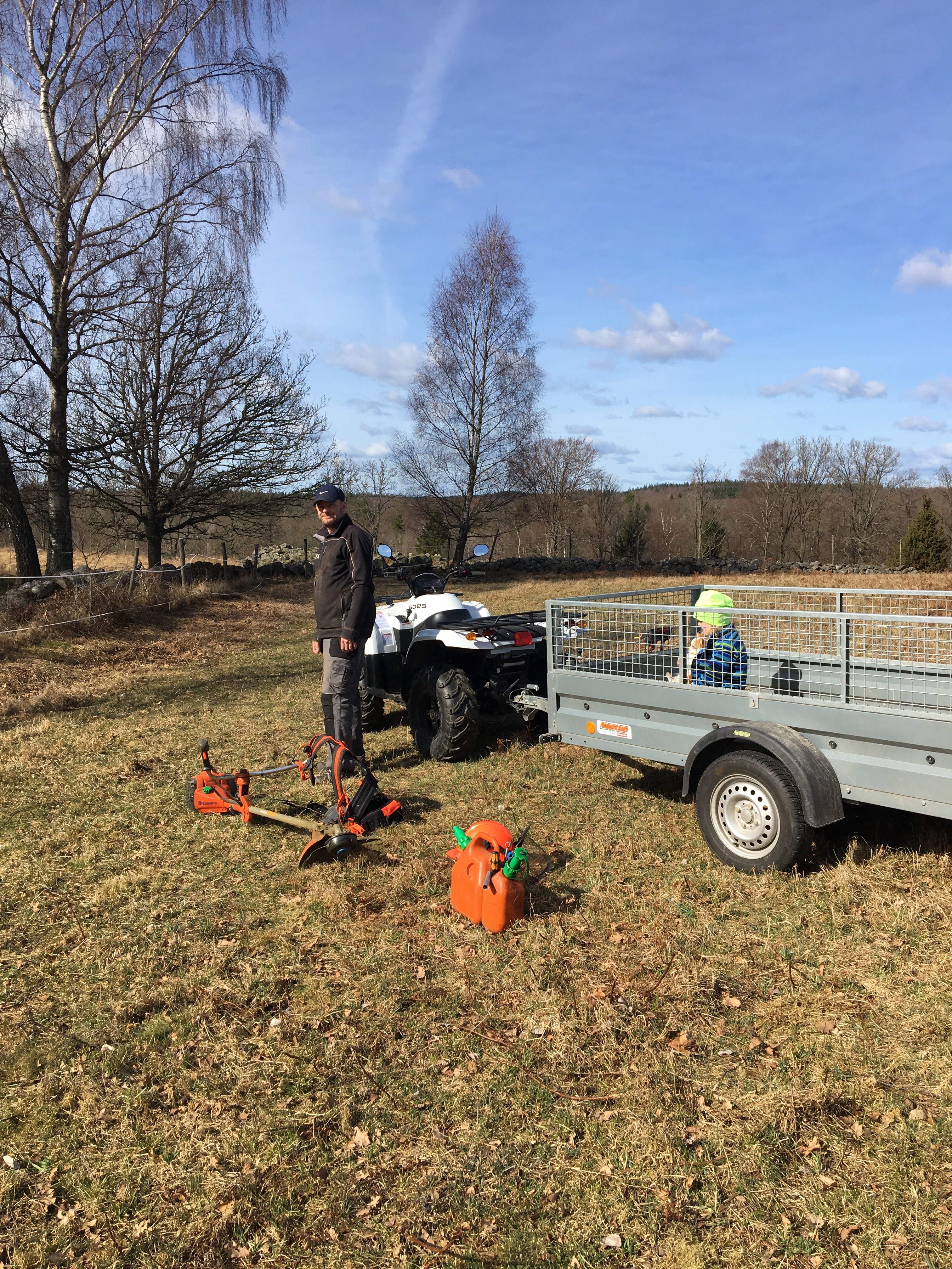 Under eftermiddagen skulle vi förbereda sommarhagen för de båda hästarna. Här står en stormtrooper på gårdsplanen redo för uppdraget. Ni ser honom va?