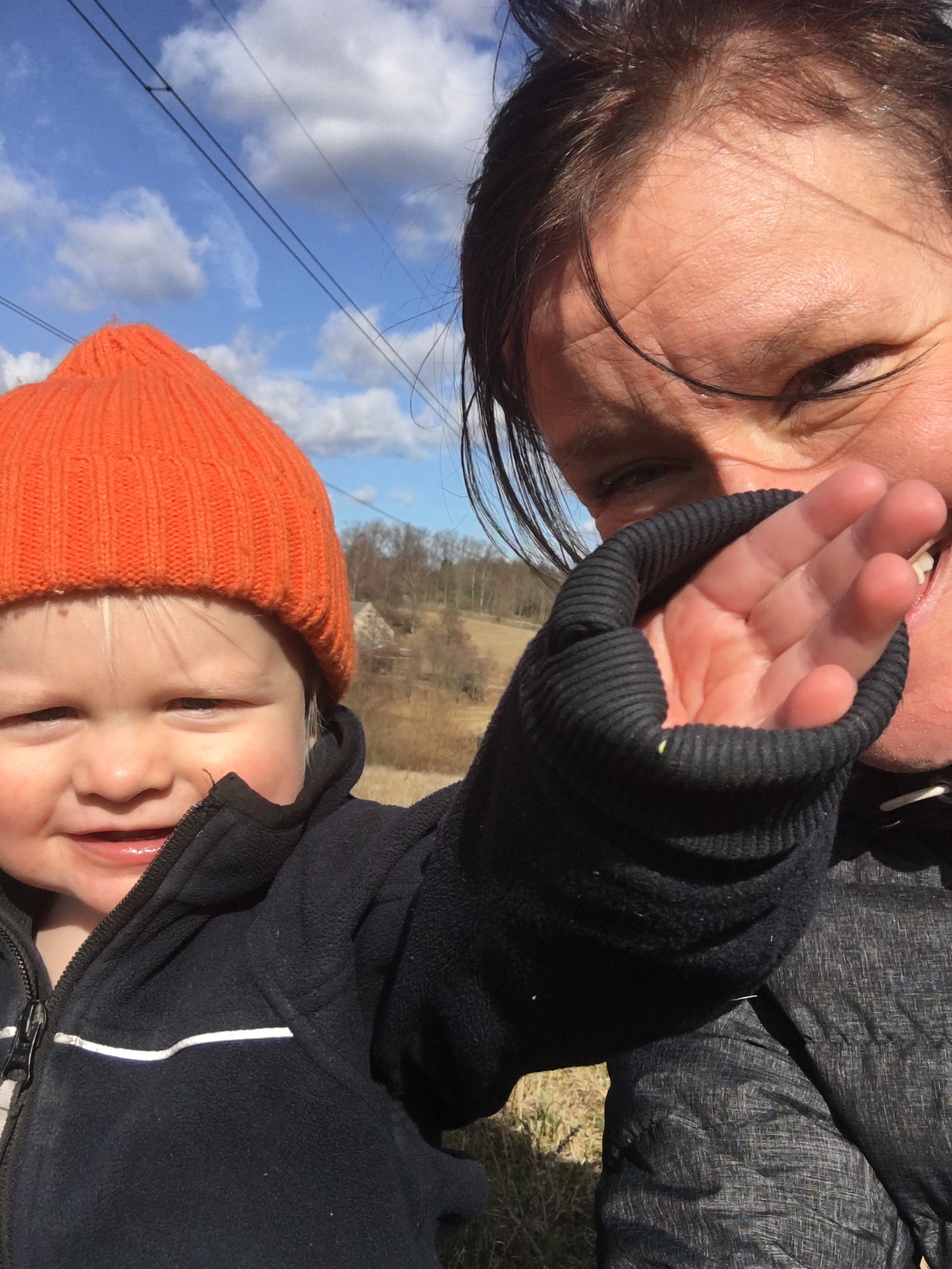 Parkerade, läs tvärnitade, bilen på gruset. Hade så väldigt bråttom ur att jag inte ens tog ut nyckeln ur startlåset eller stängde dörren. Jag sprang in genom grinden och över gräset. Rakt fram till studsmattan. Skulle lille David känna igen sin faster? Det gjorde han nog inte. Men det struntade jag i. Han fick en puss och en kram iallafall.