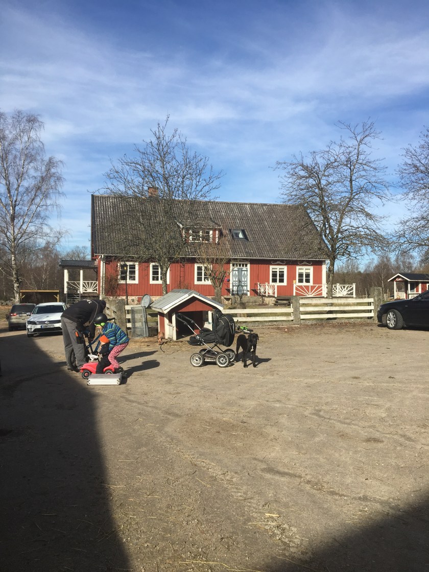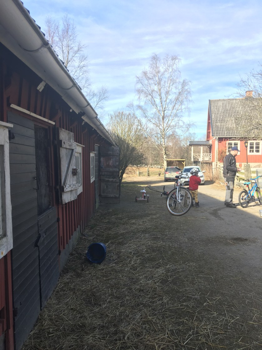 När jag anlände gårdsplanen vid deras gård var det första jag såg hur tre glada barn hoppade på studsmattan, med skratt i bröstet så det ekade över nejden. Vilket vårtecken!