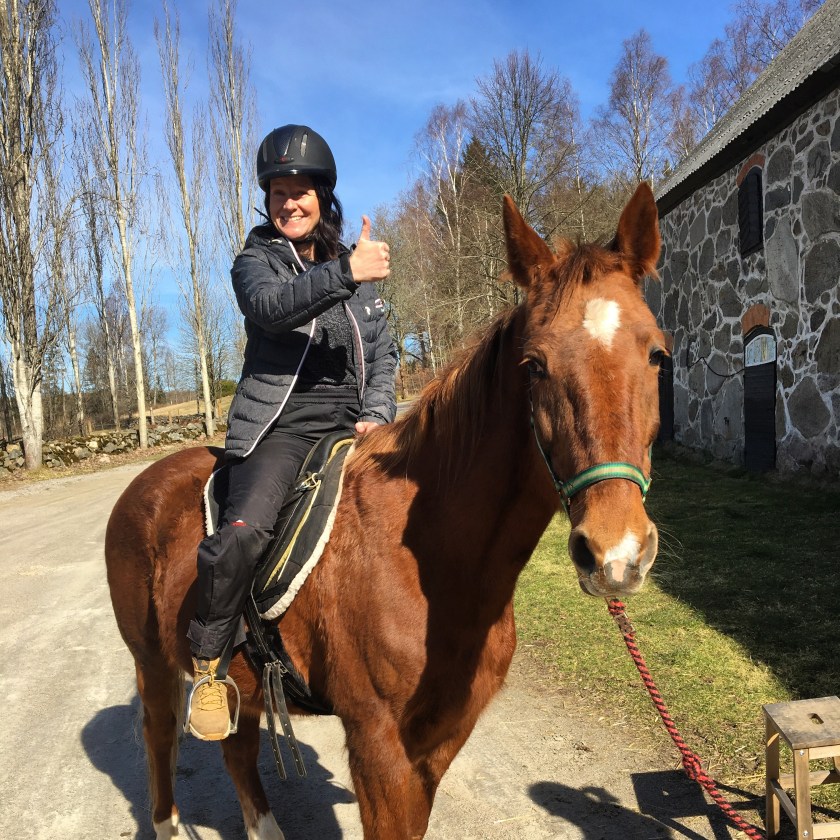 Men jag gjorde det. Hävde mig upp i sadeln. På villkor att min svägerska höll i repet. Herregud! Tänk om Sessan hade fått för sig att bara dra. Vad hade jag gjort då? Hahah! Vilken syn det hade varit. Och som sagt. Känslan av att vara sååå liten.
