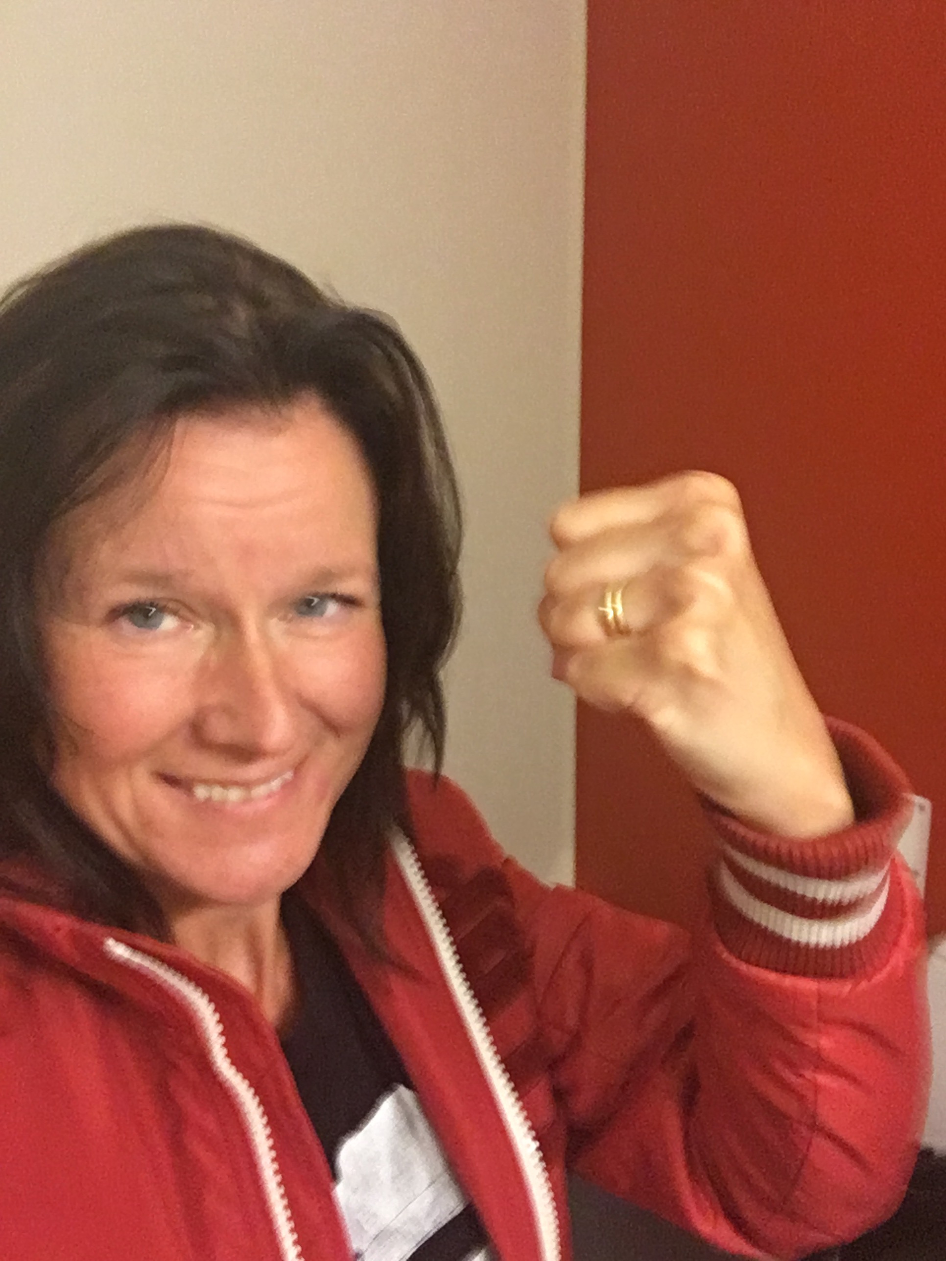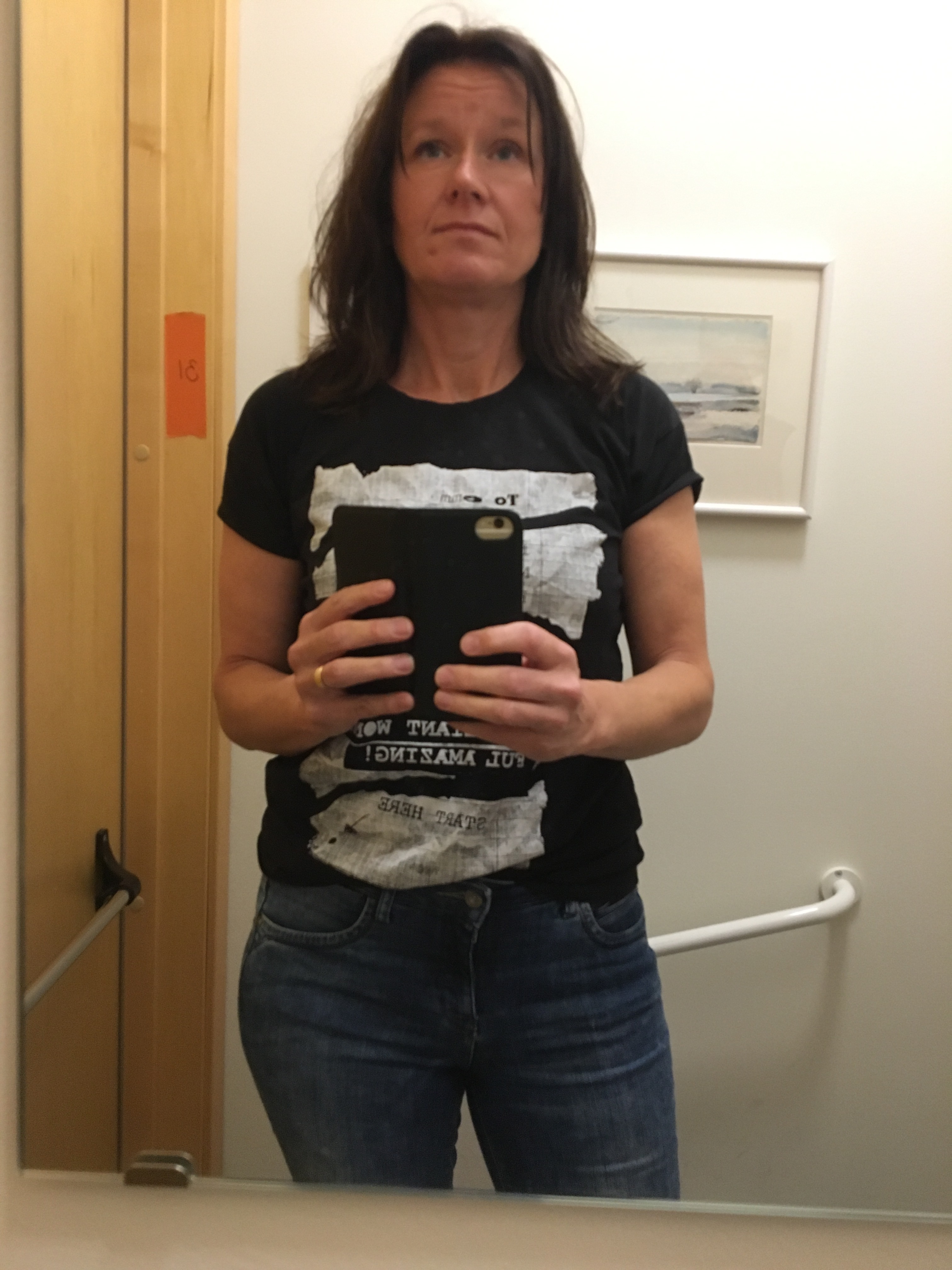 Känner jag en hård knöl igen ska jag höra av mig. Vi sa hej då och jag blev plötsligt så himla törstig. Gick in på toan. Drack vatten och kände mig så oerhört liten. Liten, törstig. Och lättad. Tittade mig i spegeln återigen. Knöt näven och ringde min man.