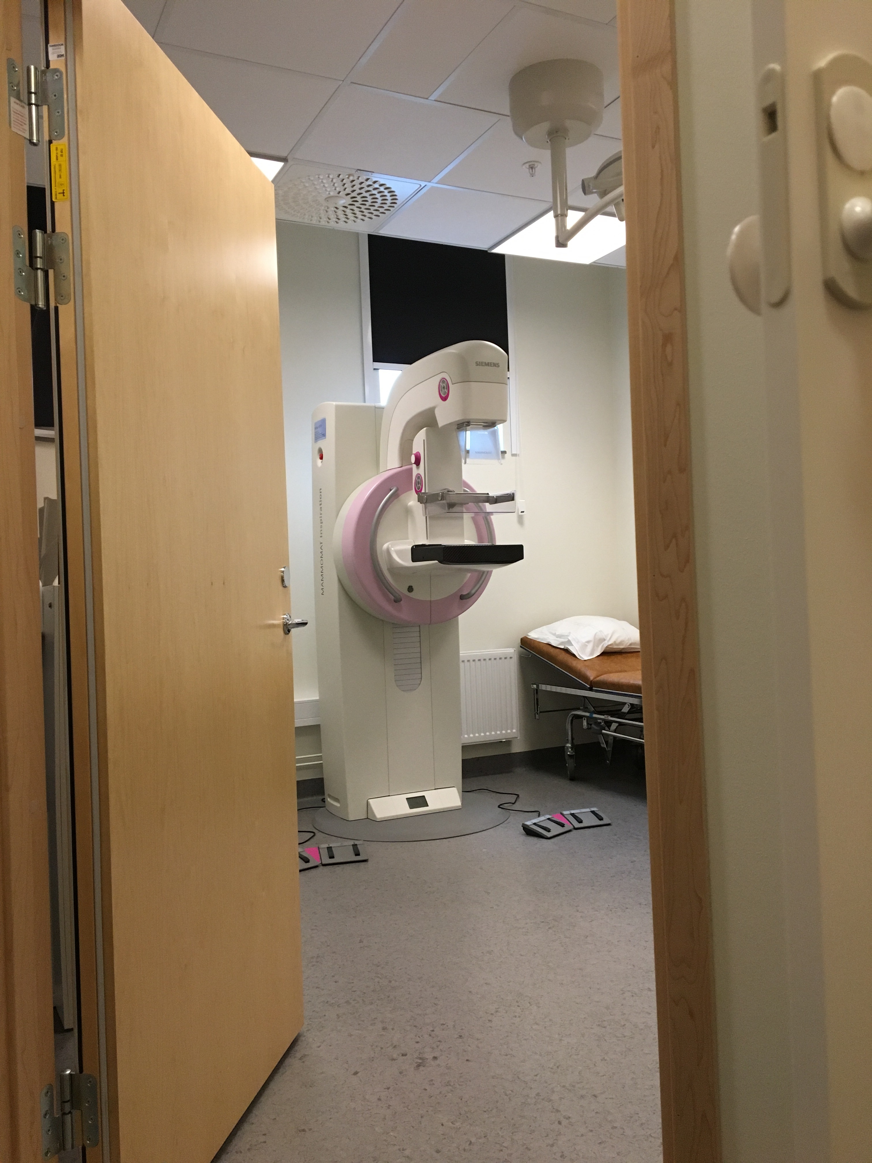 Av med paltorna på överkroppen och på med en blå sjukhusskjorta. Sen in i röntgenrummet. In med brösten i Mammomaten, som maskinen hette. Och jag var återigen tacksam över att jag inte hade klämt dem ömma innan. För nu var det verkligen inte behagligt. Och det är det ju aldrig nånsin på såna här undersökningar. Det vet ju alla som har gjort en mammografi. Att ett bröst kan bli så platt är ju helt otroligt. Men tacksamheten över stt bara få vara där överskuggade all smärta.