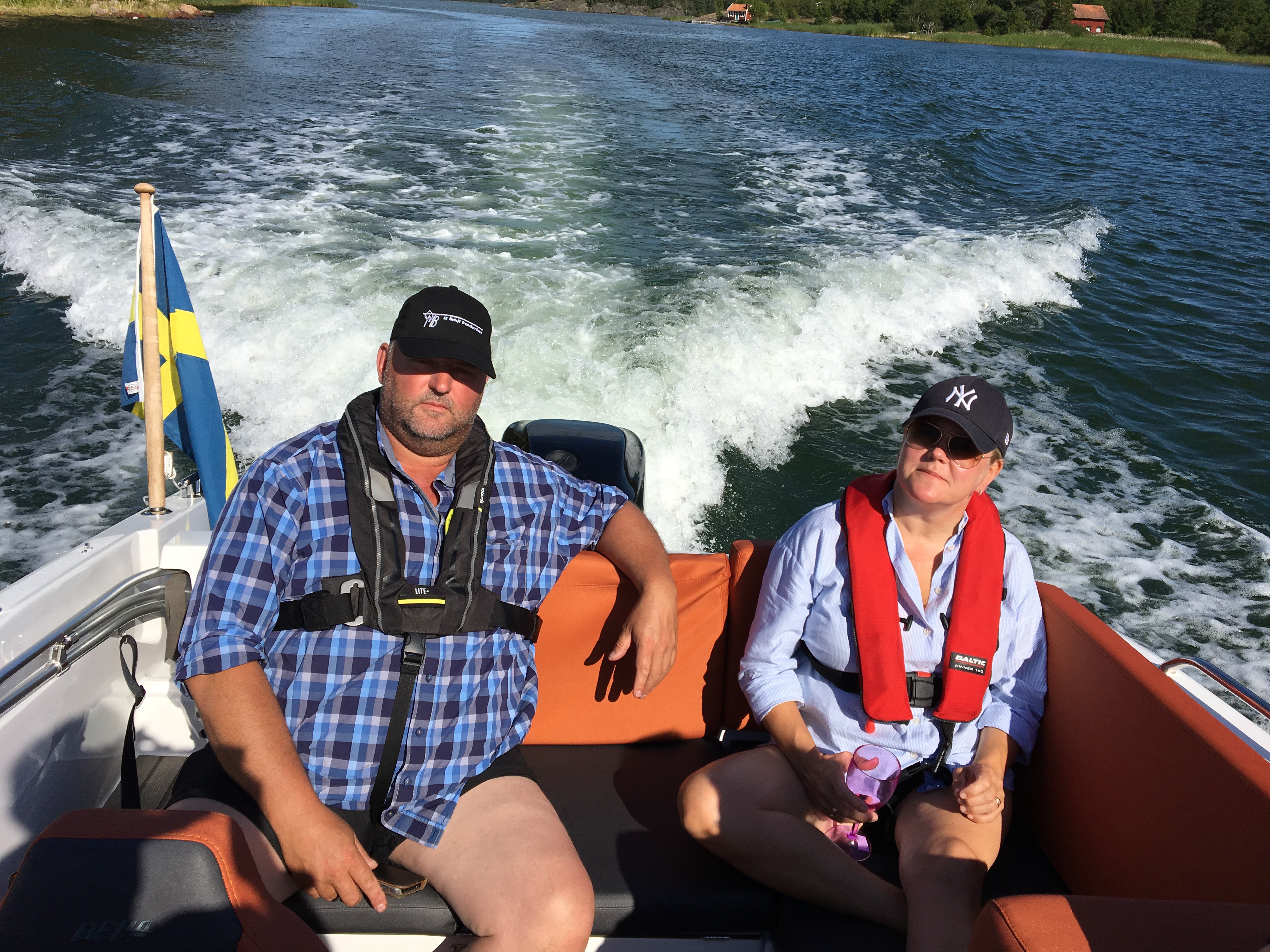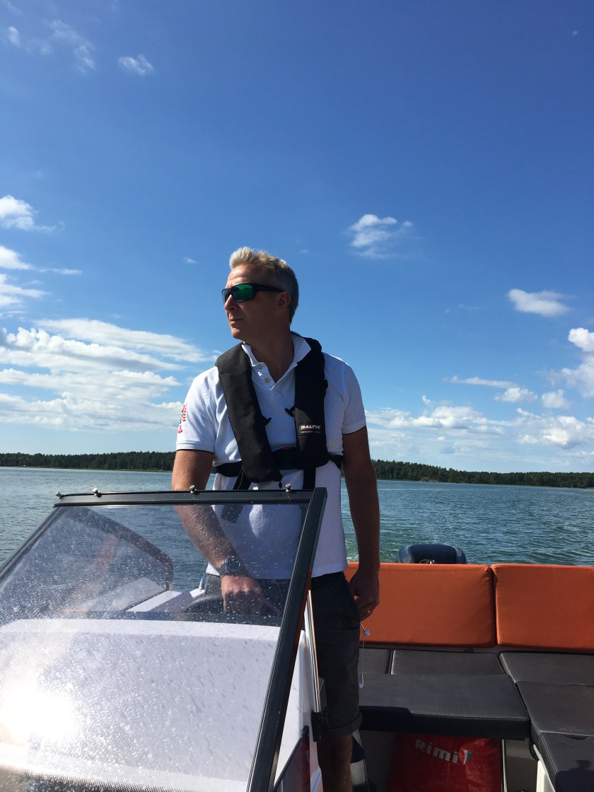 Båtar överallt. Både till styrbord och babord. I alla möjliga storlekar och hastigheter. Allt från roddbåtar och kanoter till stora transportfartyg med grävskopor på lasten. Och mitt i en farled träffar vi på en båt med vänner i. Hur liten är världen egentligen? Mitt i en ”korsning” dyker de upp exakt samma minut som vi passerar mitt över. Vi slog av motorerna en sekund och snackade lite. De skulle vidare till Västervik och Idö.