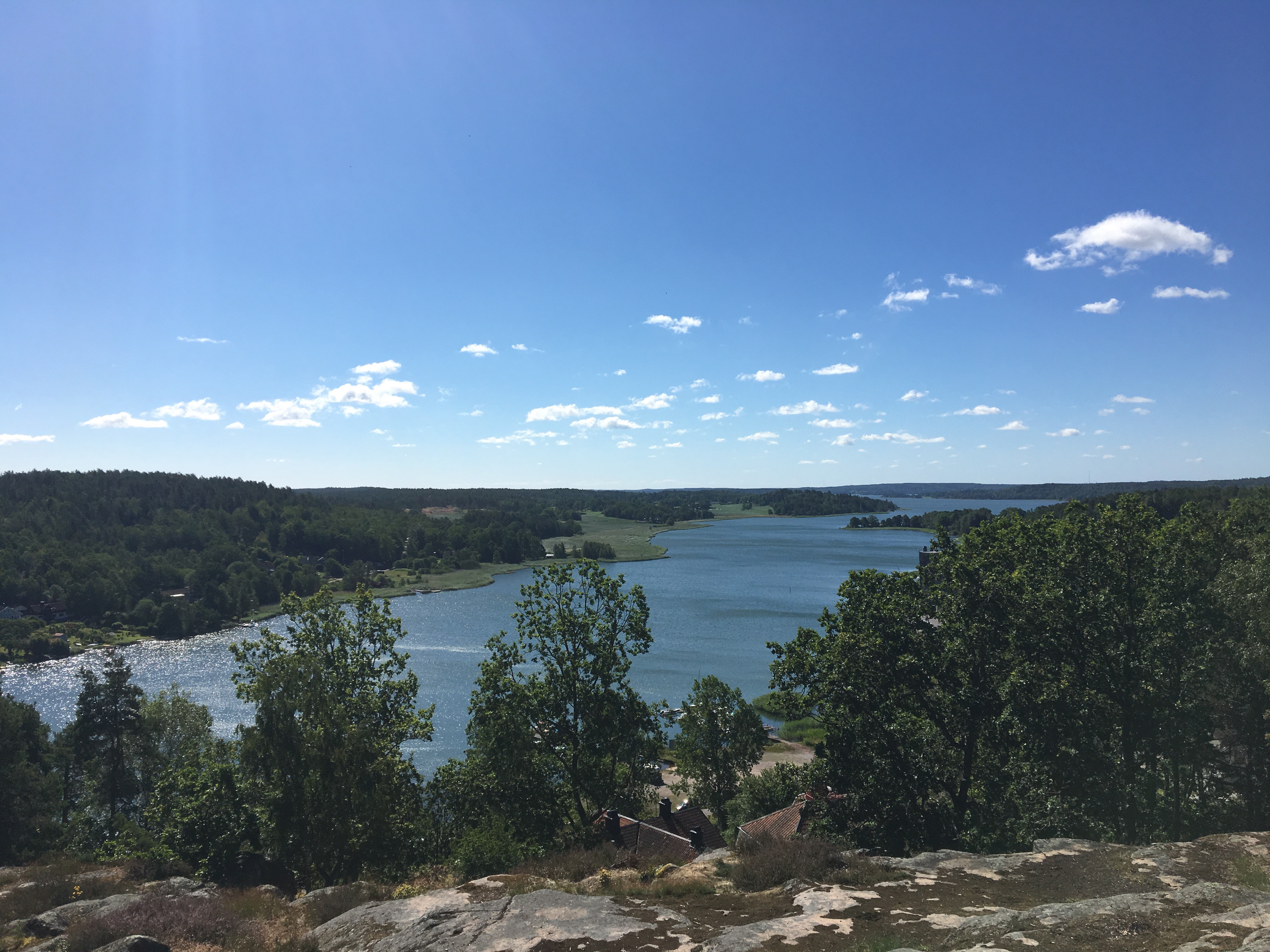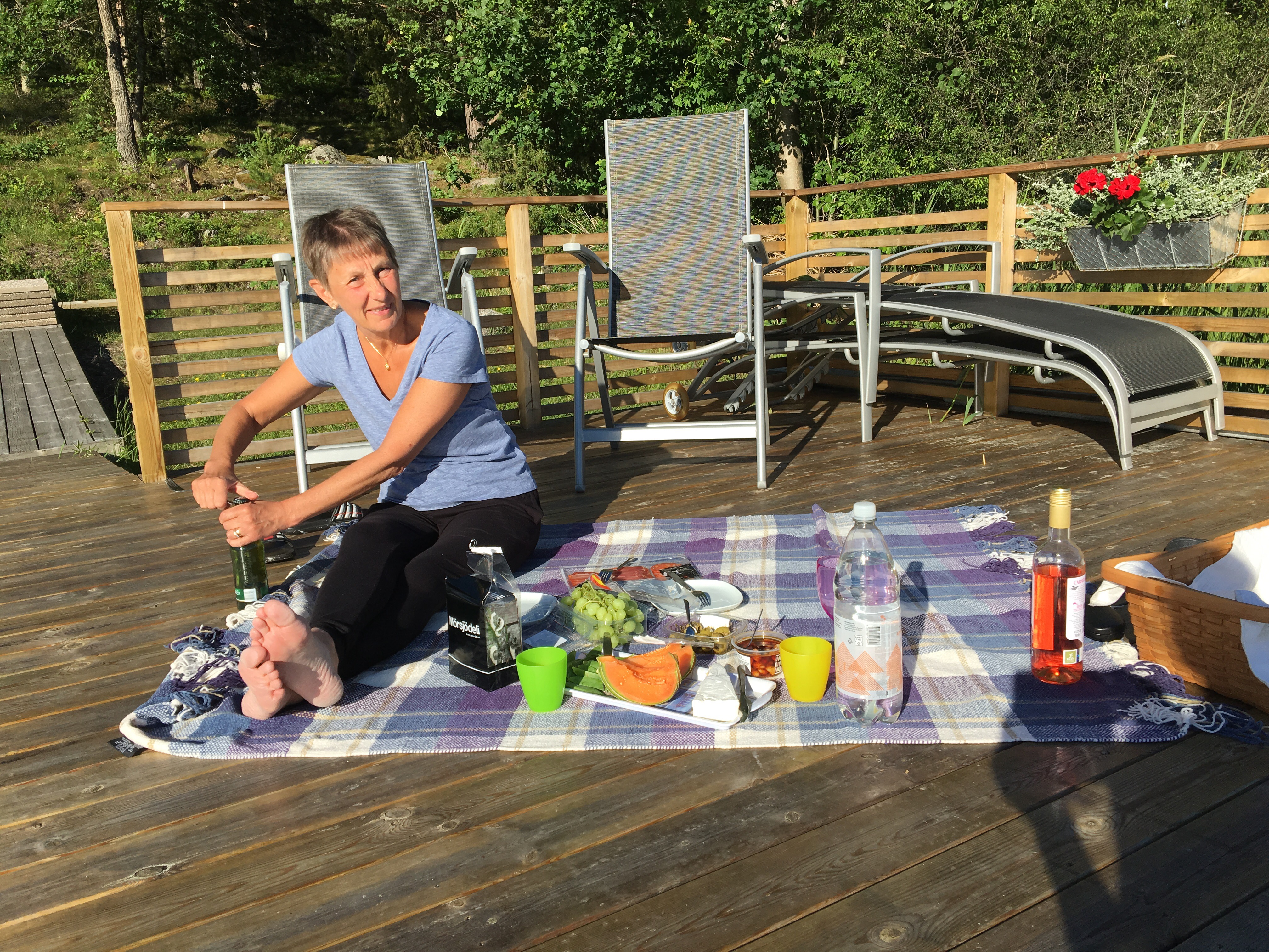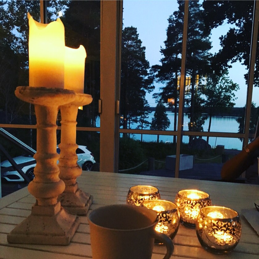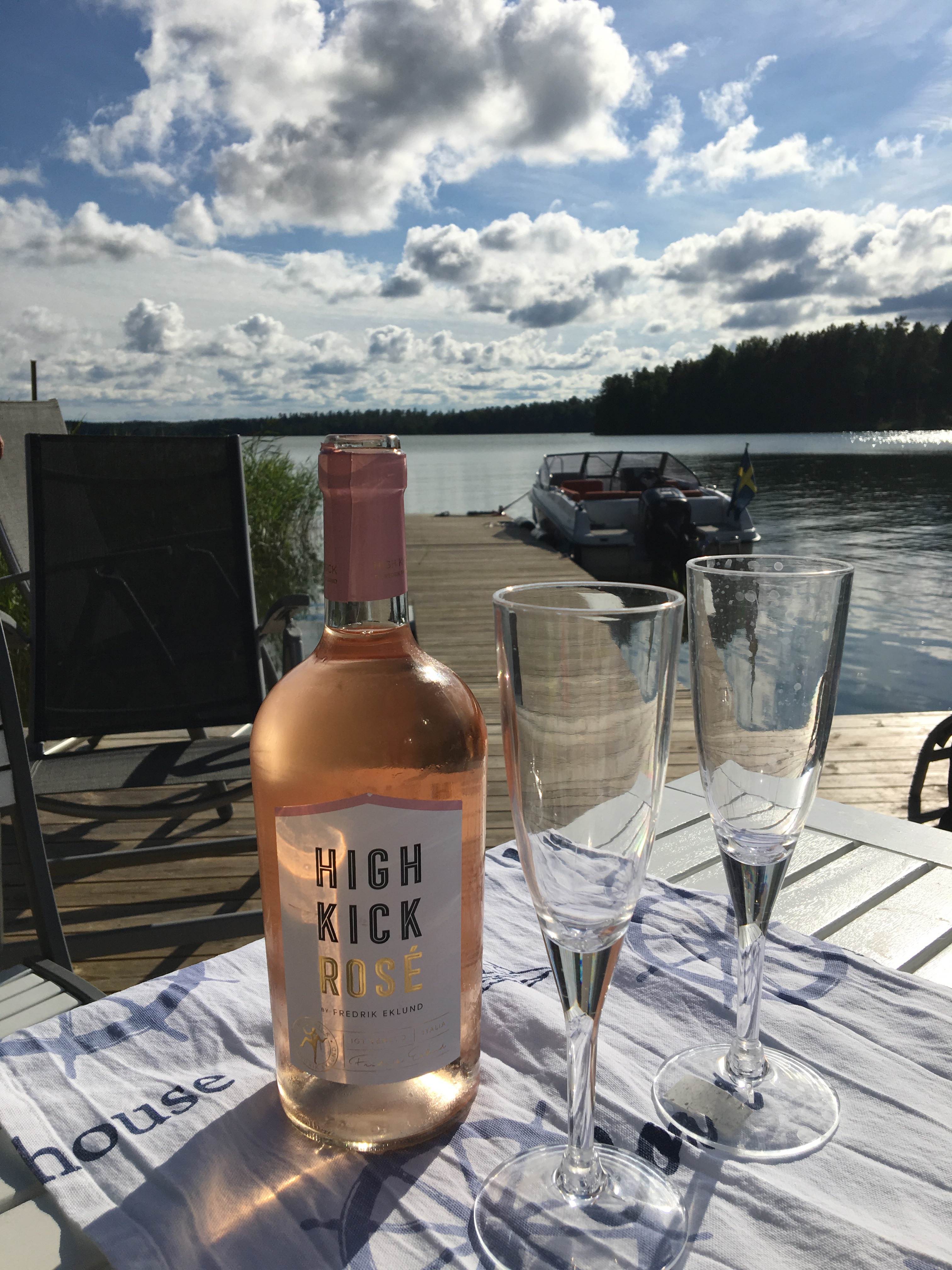 En utsökt liten servering låg plötsligt framför våra fötter. Med den svenska flaggan vajandes i den blåa himlen. En meny med skärgårdsinspiration. Vi tog självklart varsin skärgårdstallrik.