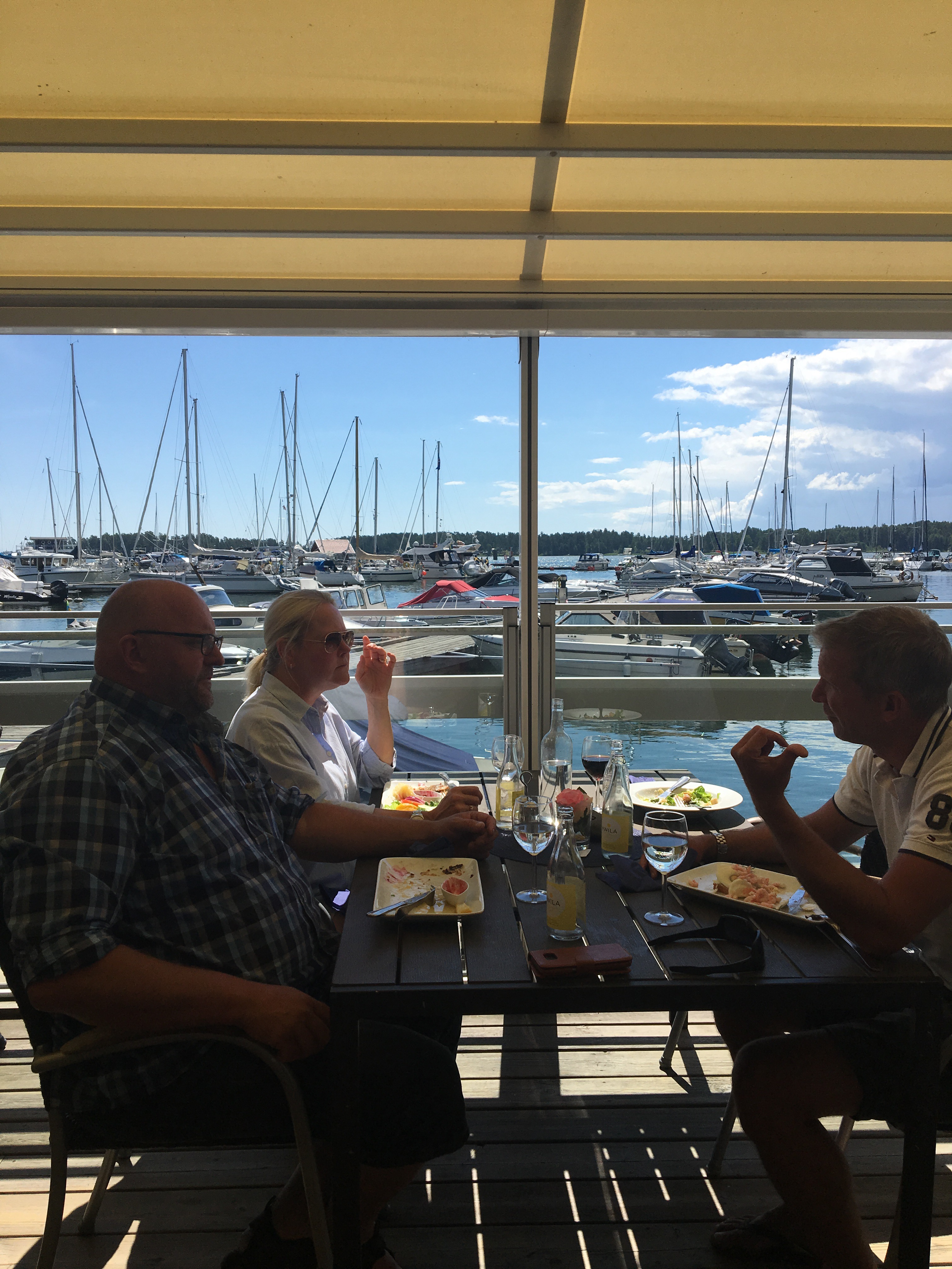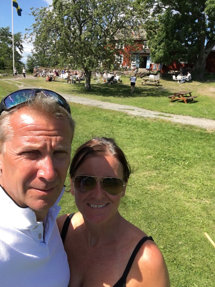 Efter lite hjälp av båtgrannen i gästhamnen så låg vi på plats. Fasen det är inte alltid helt självklart att ”bara lägga till”. Andra båtägare som glor på varenda liten grej man gör. Som verkligen sitter i sina sittbrunnar eller på sina höga flybridge och bara väntar på att nåt ska gå åt skogen. Kan tänka mig att det ser typ likadant ut på en camping och förtält ska resas. Herregud! Men det är bara att andas och känna tryggheten i det att man faktiskt inte kan allt. Man lär sig nya saker precis varje dag.