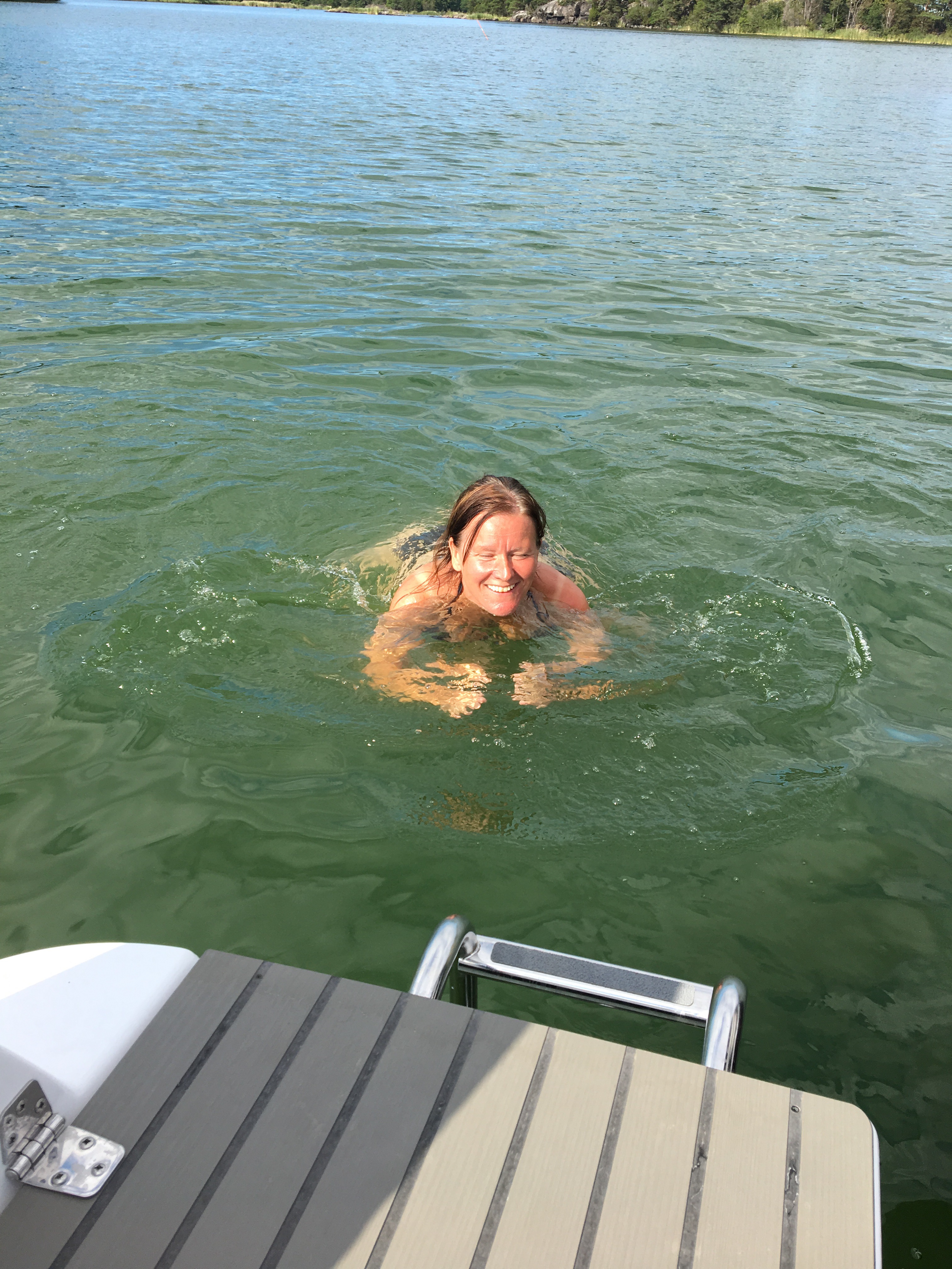 Och kolla! Jag hoppade inte i, men gick i från badstegen på Bella. Och jag släppte taget. Jag släppte taget om stegen!!