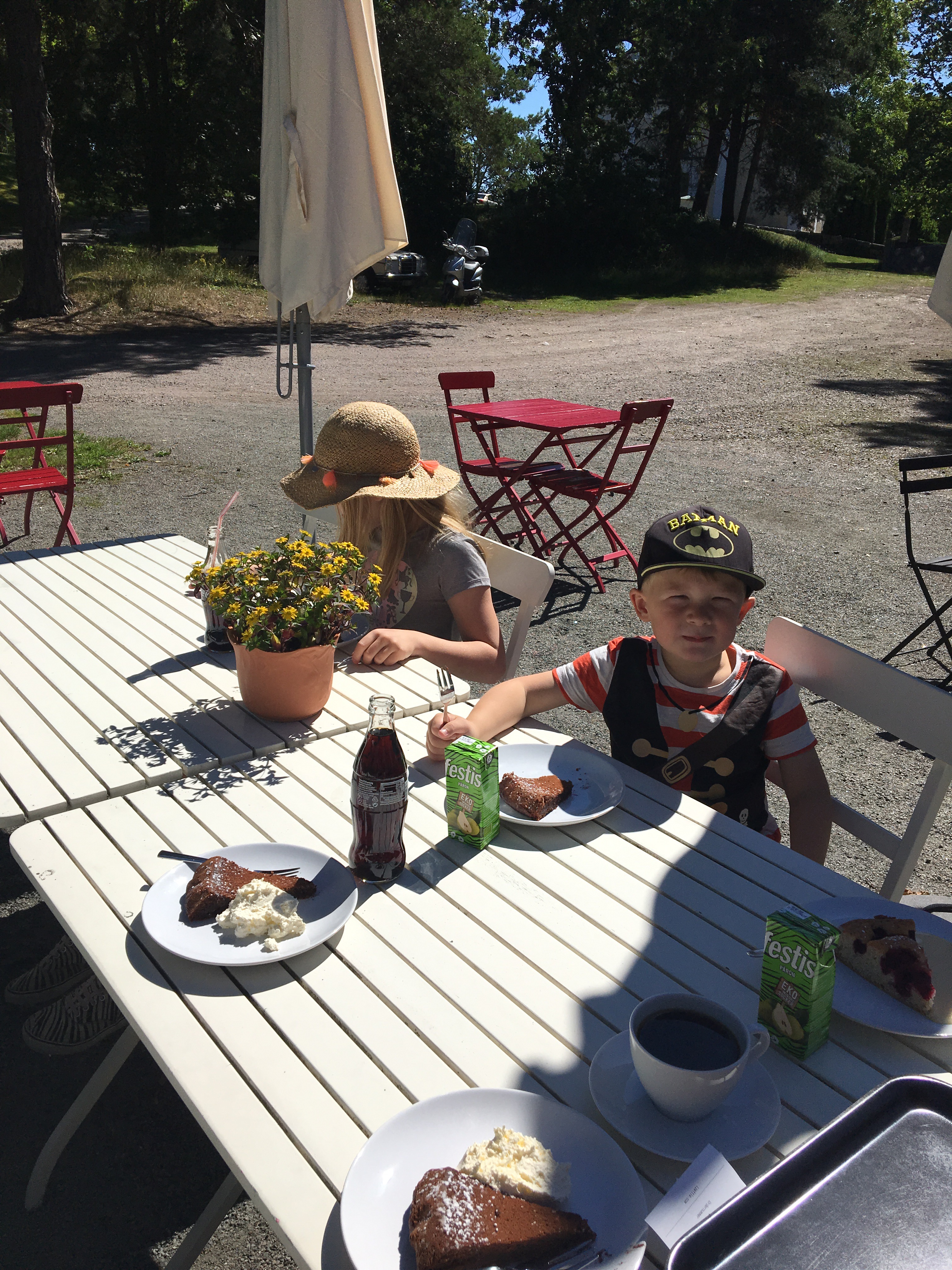 Bara vi. Så väldigt mysigt. Ja inte på själva serveringen såklart. Där var det nästintill fullsatt. Och höns som pickade runt borden.