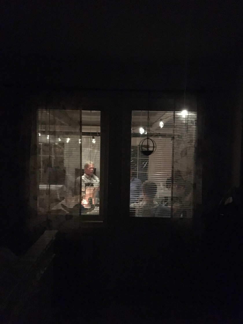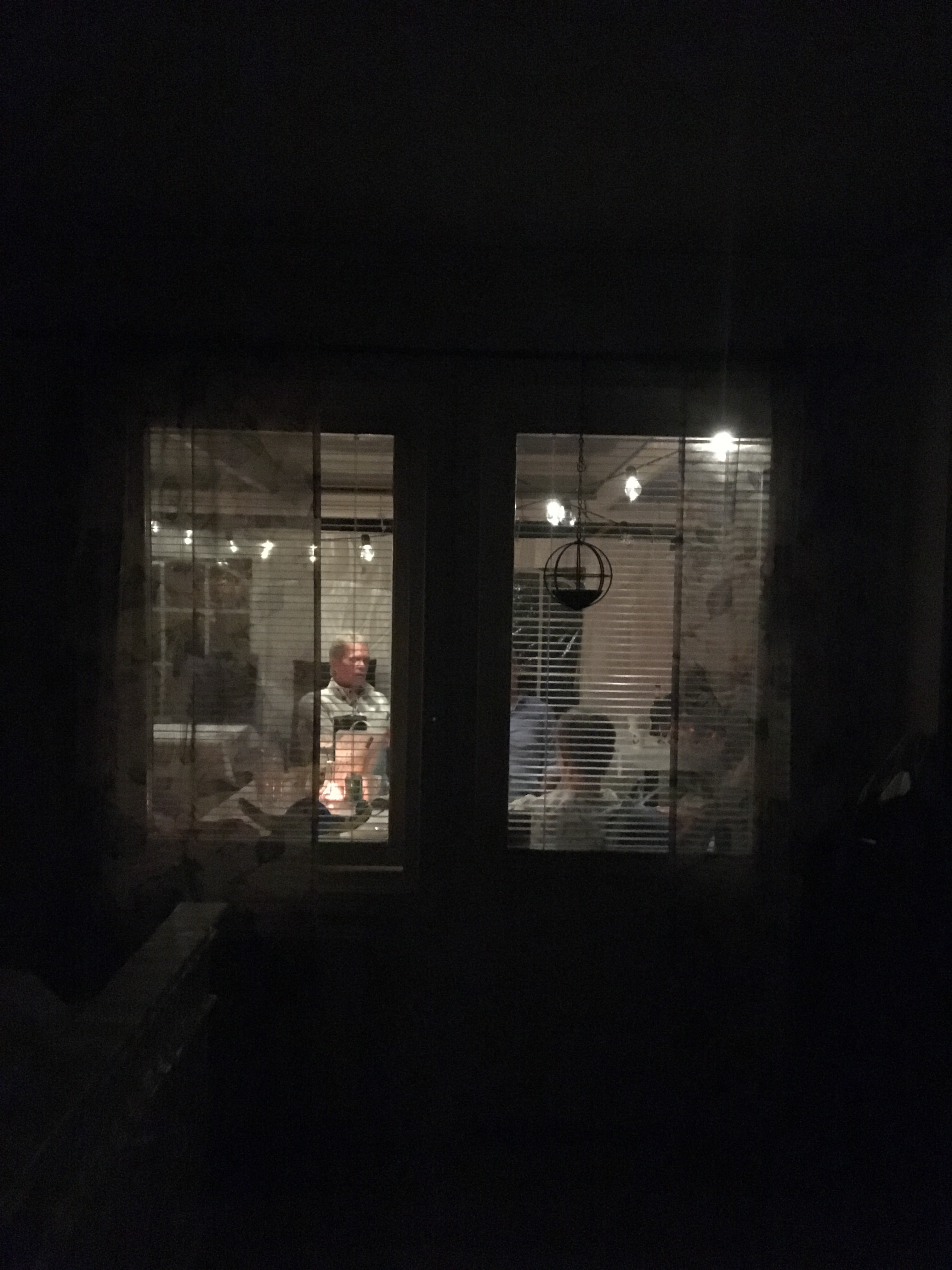 Inte en reaktion. Lyfte inte blicken. Kanske mumlade nåt som liknade ett svar. Jag hörde inte.