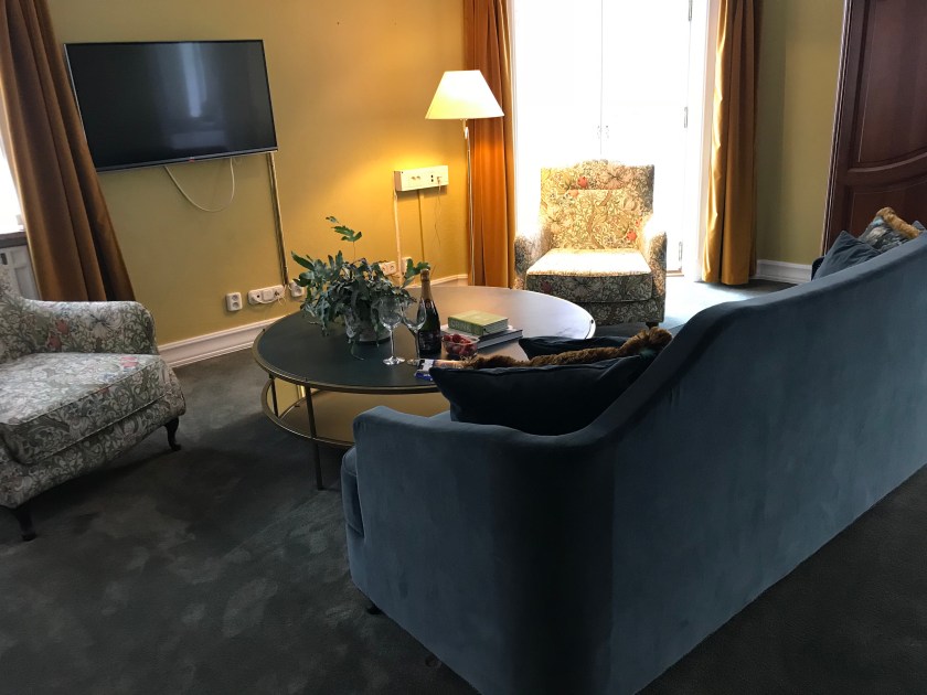 När vi klev innanför dörren på rum 302. Vår svit för två nätter framåt.