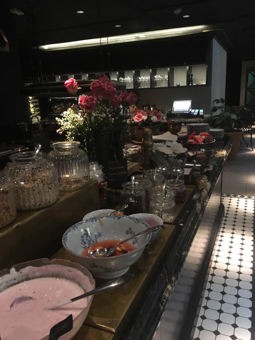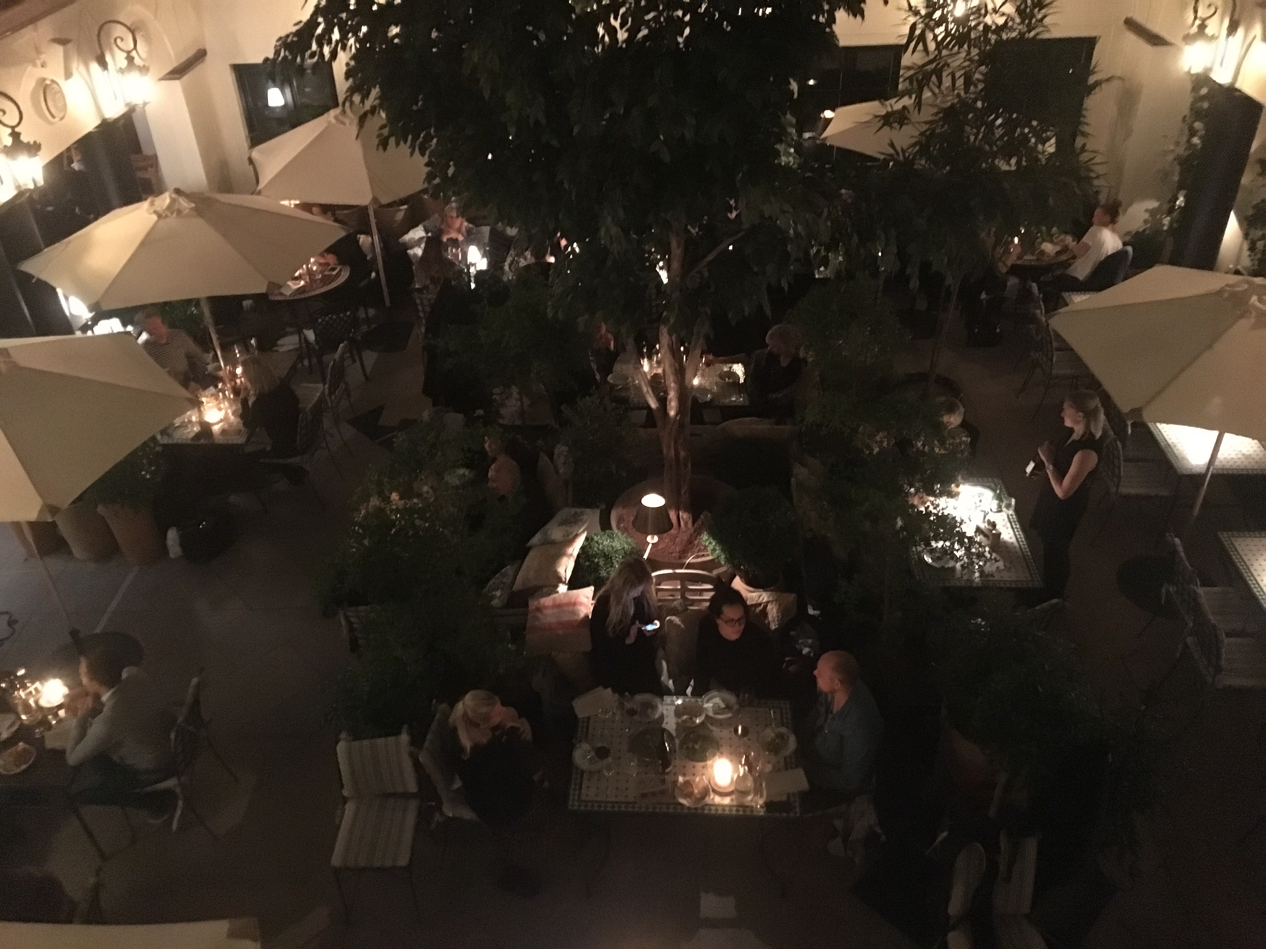 Hotellets restaurang kvällstid. Med en sån väldig längtan efter hotellfrukosten.