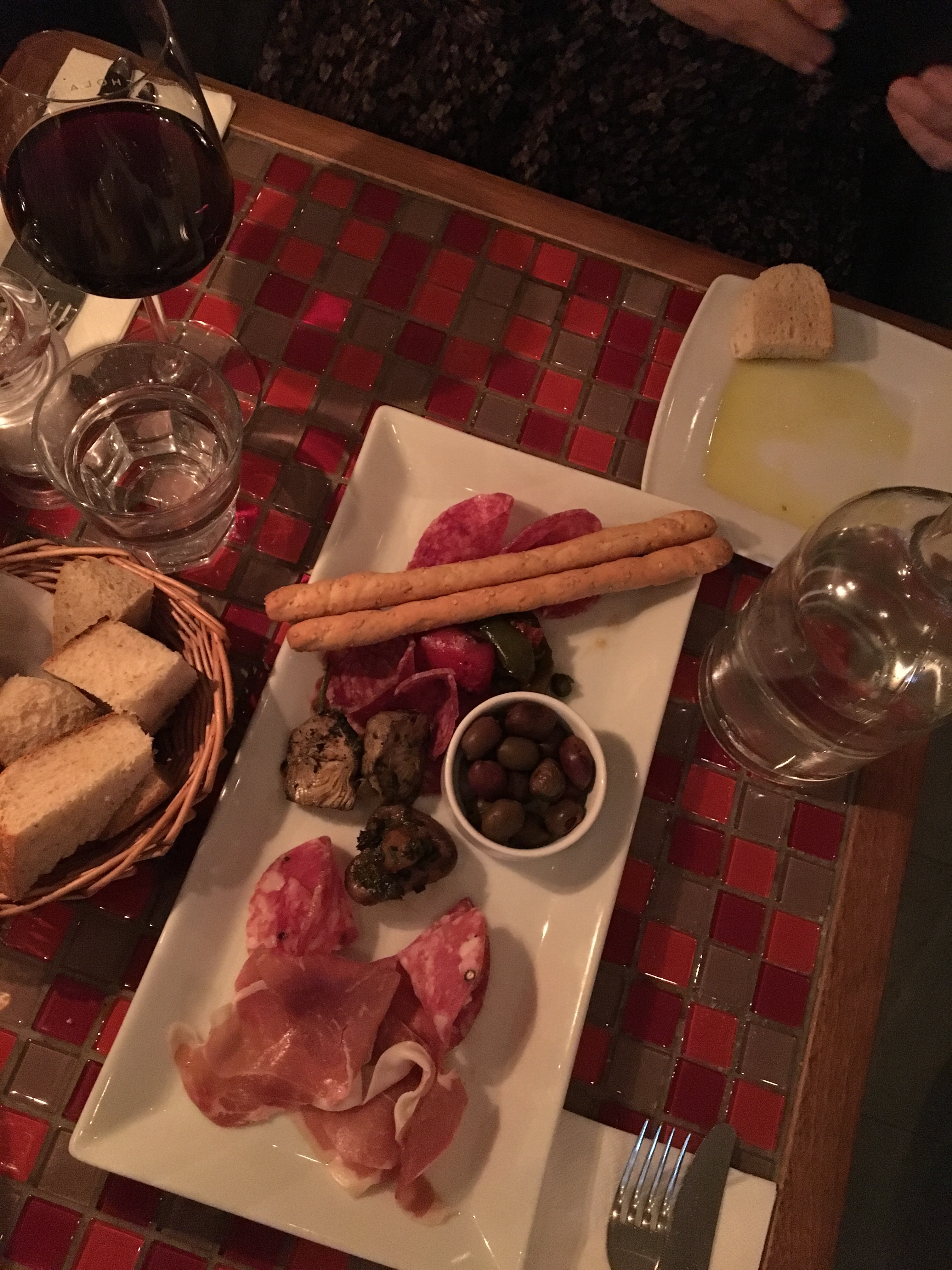 Såg genom fönstret att grannarna förberedde middag hemma hos sig medan vi förberedde oss för middag på nån liten italienare runt hörnet.