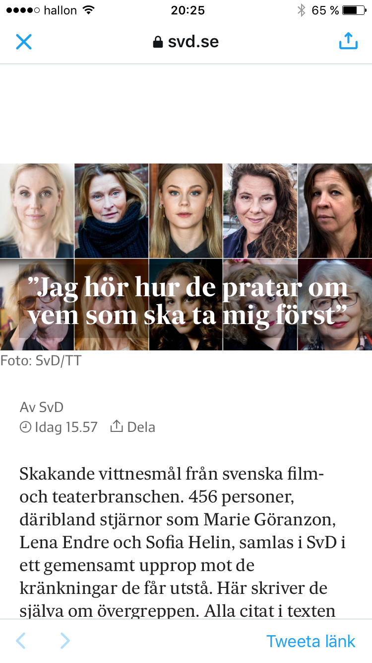 I #metoo’s svallvågor är det som om proppen har dragits ur. Först ut var skådespelarskor inom film o teater. Sen kom sångerskorna och sen juristerna och så kom de inom vården mf mf.