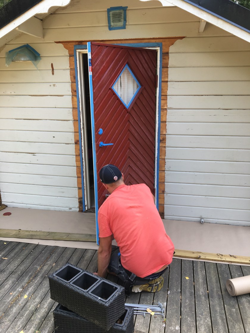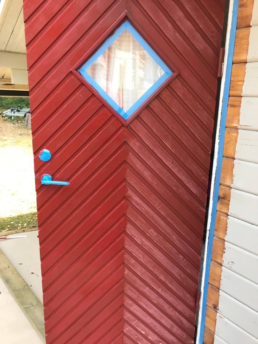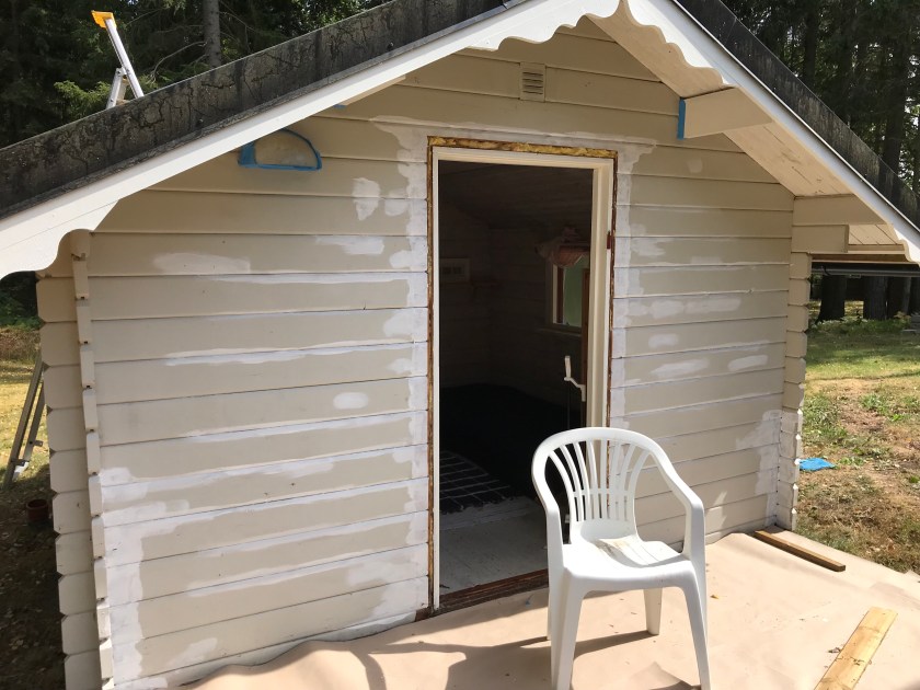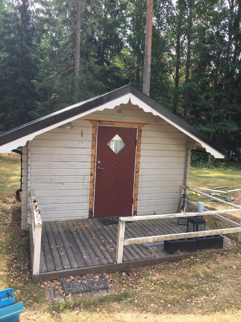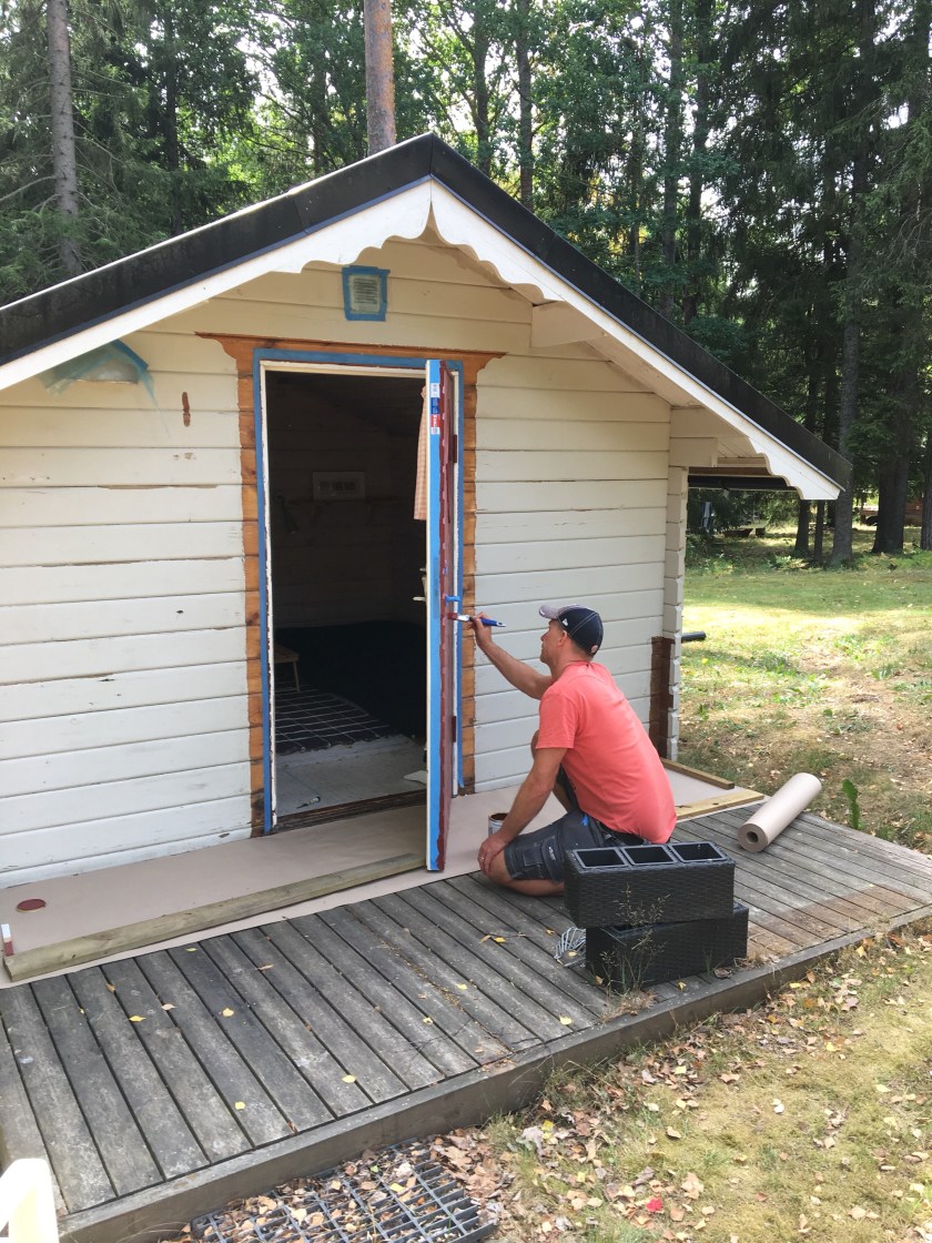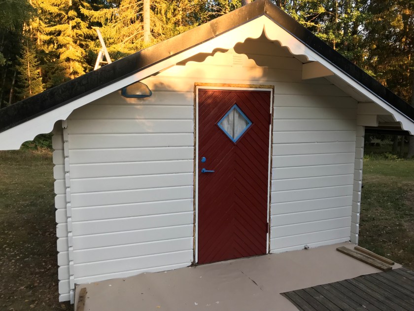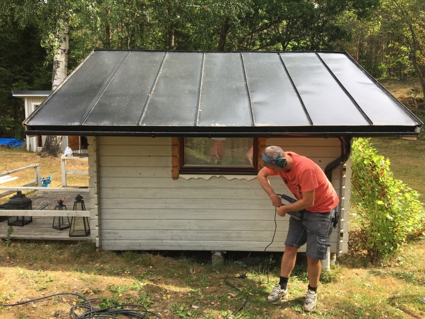 Efter två dagars idogt kämpande med fasadtvätt, skrapande och målande av fönster, dörr och gästhus så är jag helt slut i min tappra kropp. Ojoj. Vilket slit. Men det blir fint. När det blir klart. Dag 1: