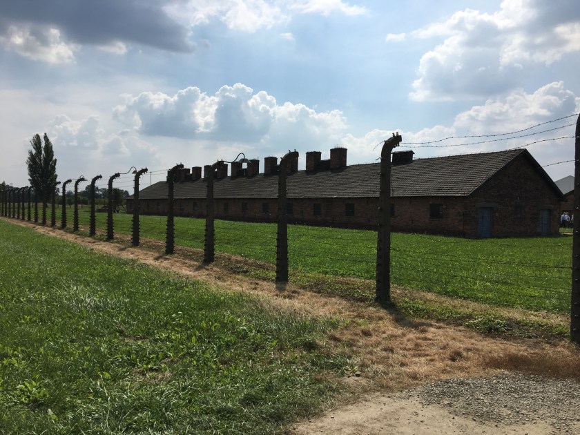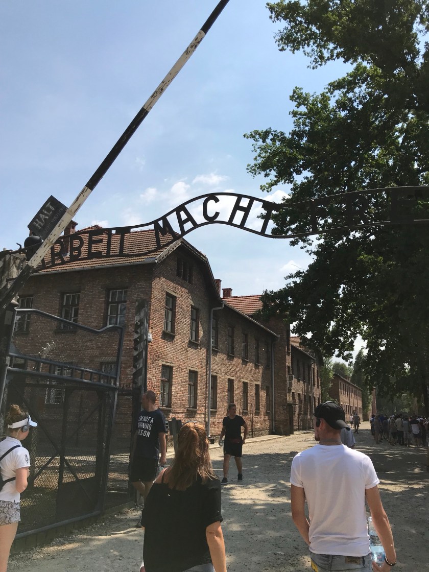Och så in under den berömda skylten. ”Arbeit macht frei” – Arbete ger frihet. Den berömda skylten i järn som hänger i det som var det största koncentrationslägret under natzityskland, Auschwitz/ Birkenau. Som senare även blev det största förintelselägret. Auschwitz valdes ut som läger pga av att kaserner redan fanns på plats och var uppbyggda för den polska armen innan. Men när dessa inte räckte till längre så byggdes även Birkenau.