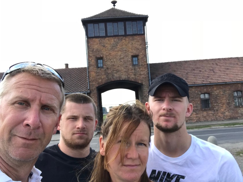 Jag och maken har under många år pratat om att ta med våra grabbar till typ Aushwitz/Birkenau. De överlevande blir färre och färre och snart finns det inga kvar som själva kan berätta om förintelsen.Vi har dock ansett att våra pojkar varit alldeles för unga. Fram tills idag. Nu är det snart 19 och 21 år och de anses vara så pass mogna och redo att få vara med och påverka Sveriges framtid i valet den 9/9-2018. Med just detta i tanken kände vi att just precis nu var dags att ta med hela familjen på vår största historielektion. Vi var på väg. På studieresa.