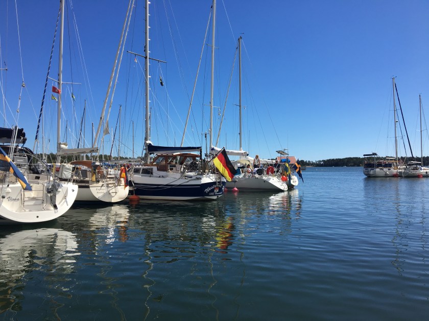 Den tyska flaggan visar sig vara den största vajande flaggan av alla flaggorna i hela gästhamnen. Vågat av den flaggan på nåt vis ändå. När den åkte ur fotbolls VM så det bara sjöng om det genom att till och med komma sist i gruppen där Sveriges flagga kom etta.