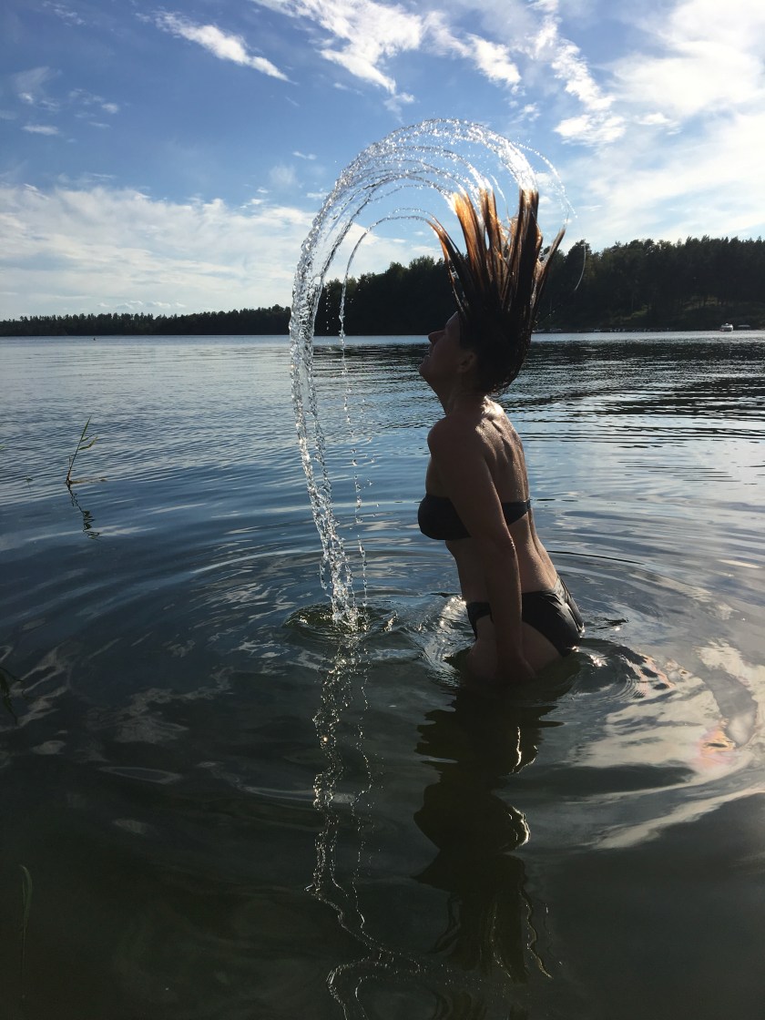 Kolla, vilken skillnad! Kväll 2: Och har man slitit så hårt i två dagar så badar man sen i havet. Så är det bara. Man liksom bara hoppar i. Inga konstigheter.