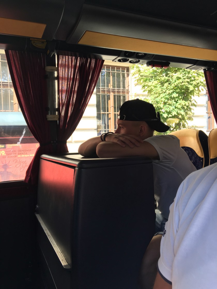 En tagen och rörd familj. En tyst bussresa tillbaka mot Krakow.