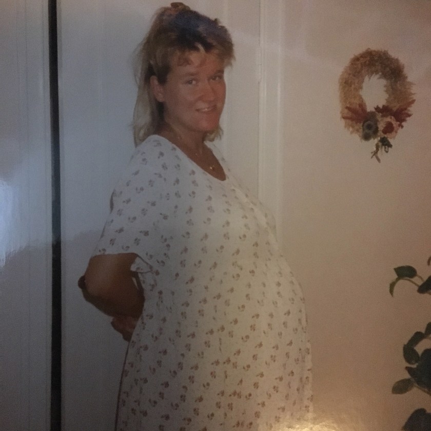Efter några månader som sambos blev jag gravid i december 1996. Jobbade klart i Hogstad för att gå höggravid sommaren 1997. En av de varmare somrarna där också alla fläktar tog slut. Maken fick tag i en av de sista på Elgiganten, som han tog hem till sin flåsande tjej. Minns att det första jag gjorde varje morgon var att vinkla på persiennen- onej, blå himmel idag med, och gick o la mig igen.