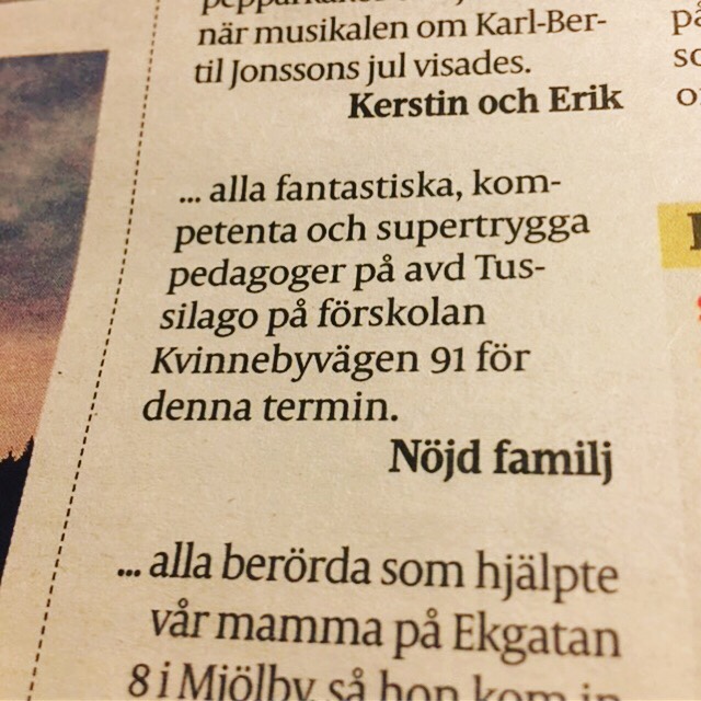 Så tack min serviceman för allt du gör för frugan och hennes debut i Vasan.