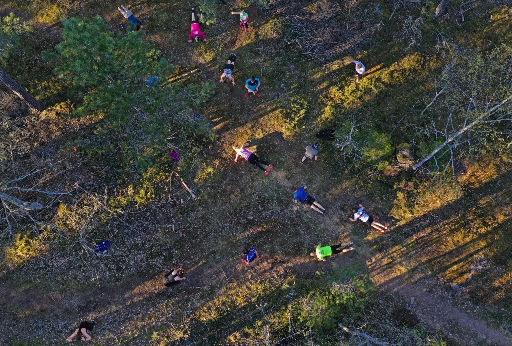 För ett på veckor sedan fick jag ett meddelande på messenger. Jag såg att vi var många som hade fått samma meddelande. Det var från en av grannarna på gatan. Han frågade om det var nån av oss alla som var intresserade av att hoppa upp ur soffan på tisdagkvällen den kommande veckan. Hans tanke var nämligen att vi tillsammans skulle utnyttja den väldigt fina skogen vi har med stigar och bergsknallar runt vårt område för att träna ihop.