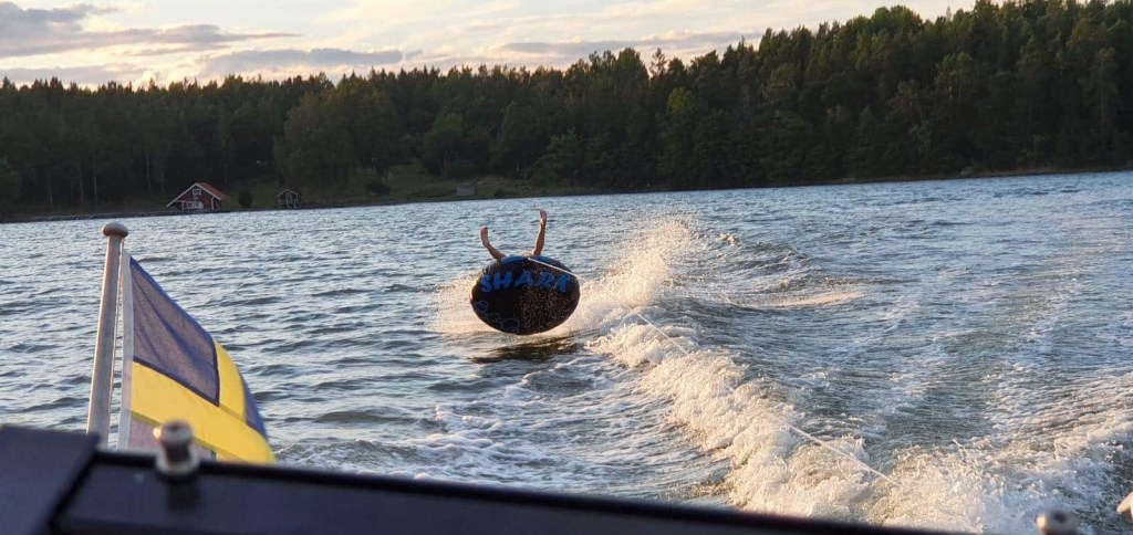 Åka ring. Kan vara bland det roligaste faktiskt. För både vuxna och barn. Men för det ändamålet krävs det att algerna är borta och att det inte blåser för mycket. Inte så höga krav kan tyckas. Men det kan ändå vara en utmaning. En sommar som denna.