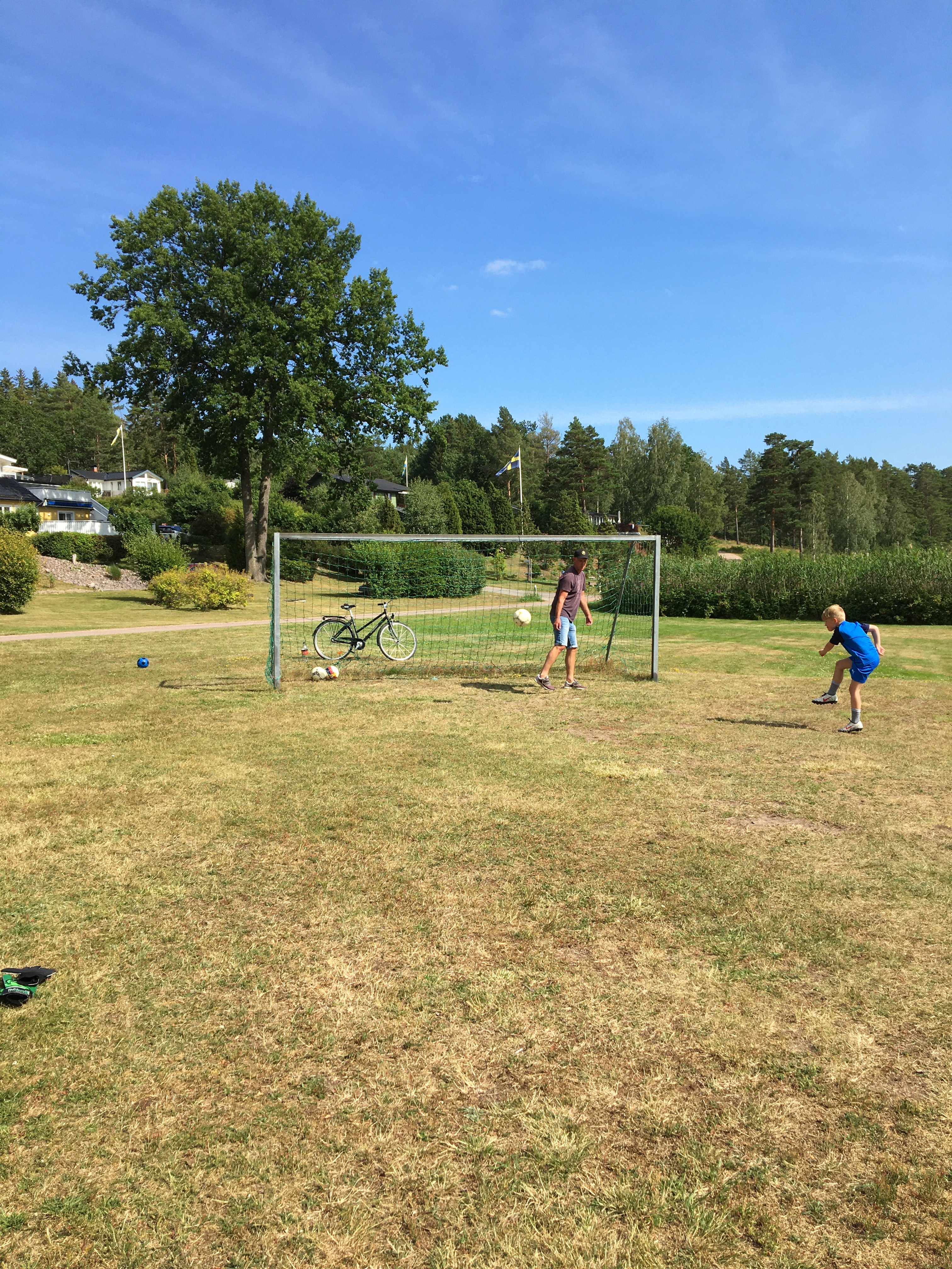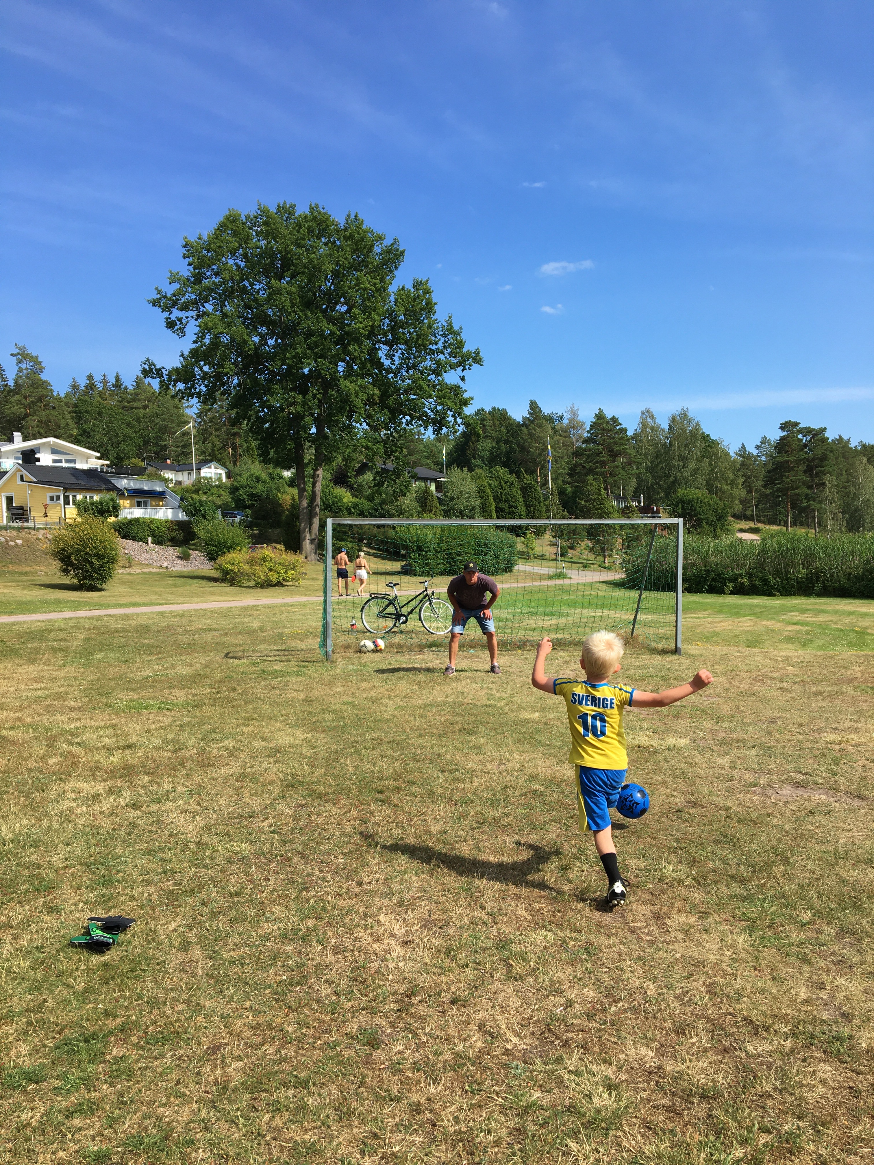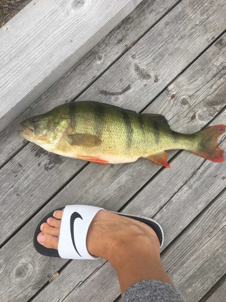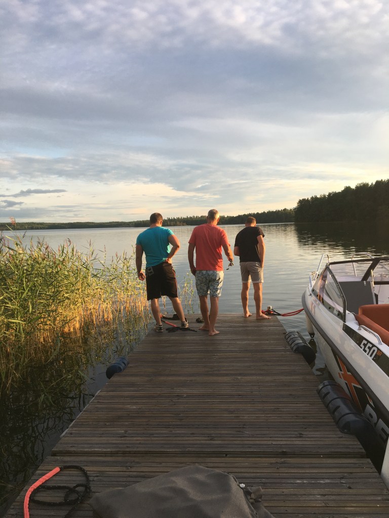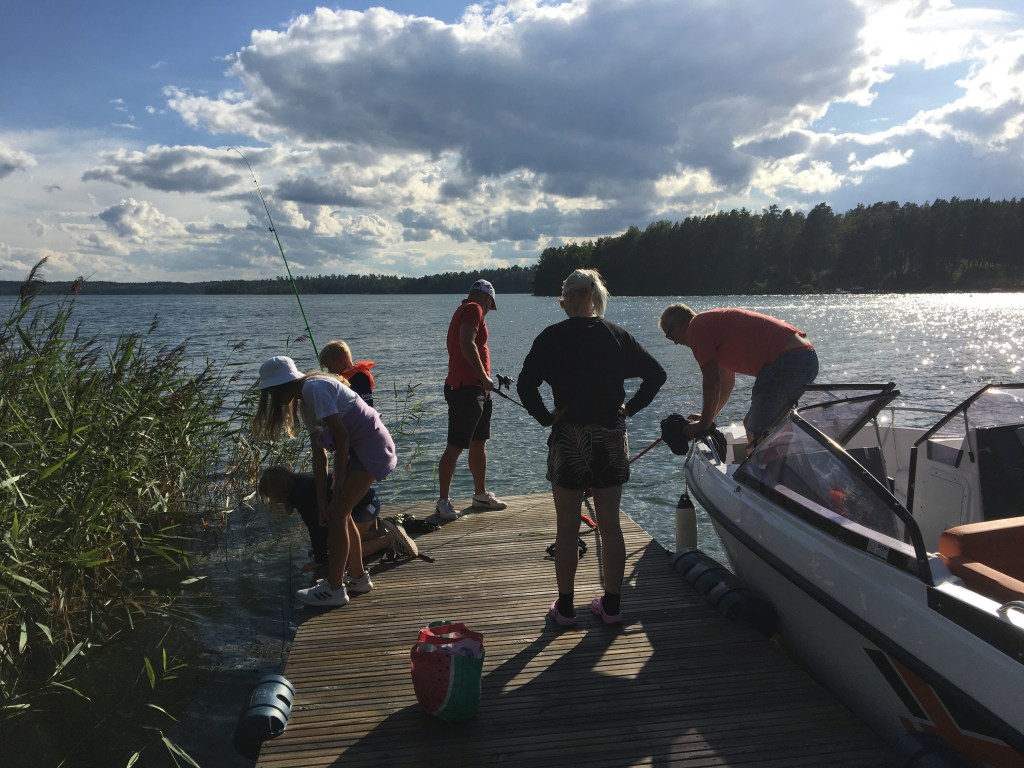 Sista familjen ut var makens ena syster med familj och de tog tag i fiskespöna på direkten. Under bryggan bor det nämligen riktiga bjässar har vi sett denna sommar. Så from nu kommer jag aldrig mer att bada härifrån bryggan om de inte försvinner 🙈