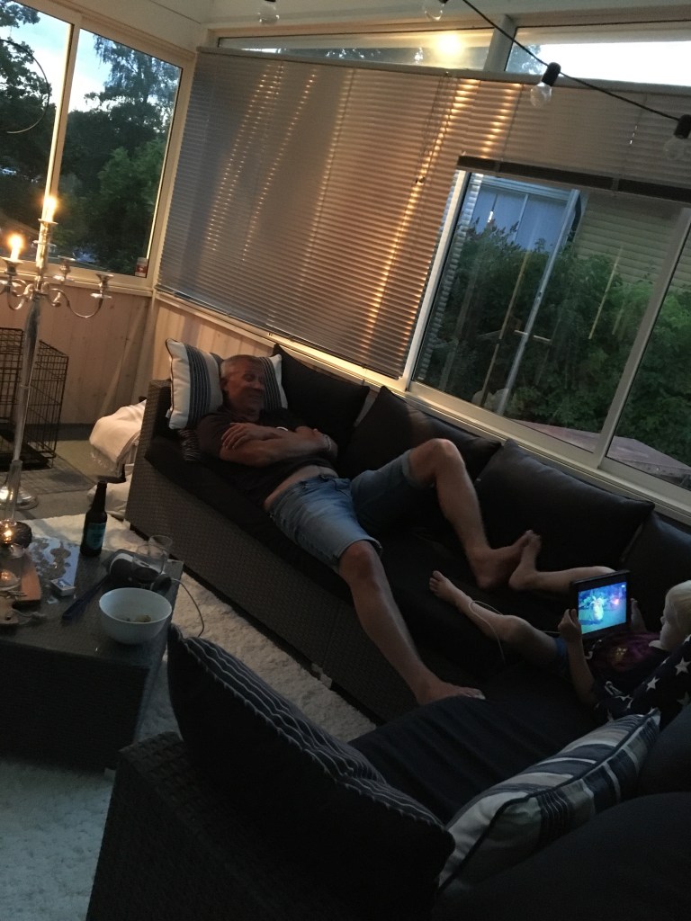 Chill på nya altanen. Så kul att nya decket har använts så mycket.