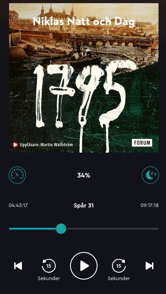Lyssnar på en så jäkla bra ljudbok. Tredje o sista delen. Det är 10 timmar kvar på den. Vill inte att den ska ta slut.