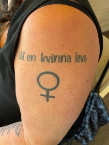 Då plötsligt såg jag denna överarm på en av gästerna. Jag kunde inte låta bli. Jag drogs dit. Jag drogs till hennes överarm och fram till bordet där hon satt med två herrar i sitt sällskap. Och jag sa att jag bara älskade hennes tatuering. Hon log och tackade.